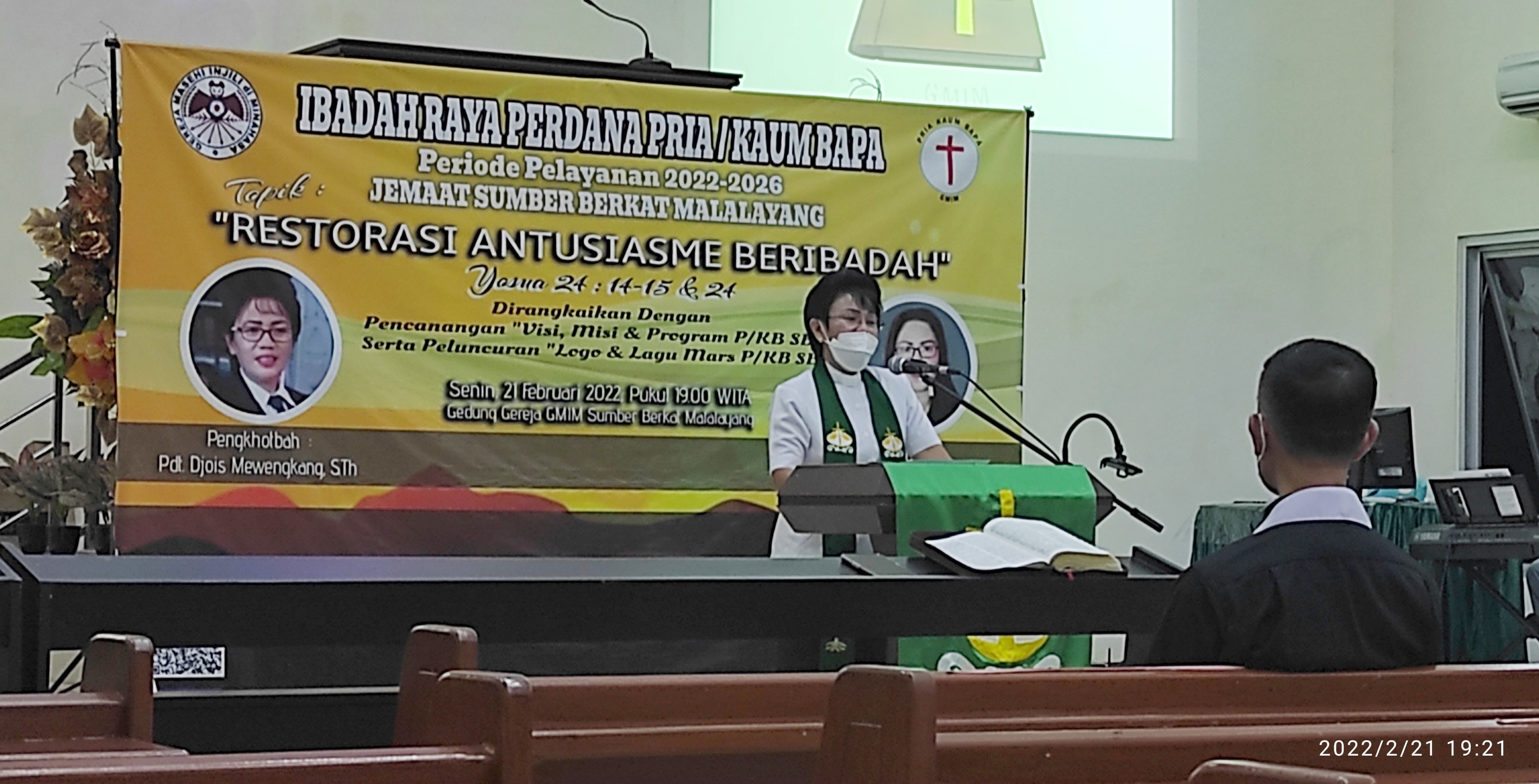 Pria/Kaum Bapa Jemaat Sumber Berkat Malalayang melaksanakan Ibadah Raya Perdana Tahun 2022, Bapak Ronald Karaeng selaku Bendahara Komisi P/KB membuka dan menuntun jalan nya Acara Ibadah Raya Perdana Pria/Kaum Bapa Sumber Berkat Malalayang, yang dilaksanakan di Gedung Gereja GMIM Sumber Berkat Malalayang 21/02/22